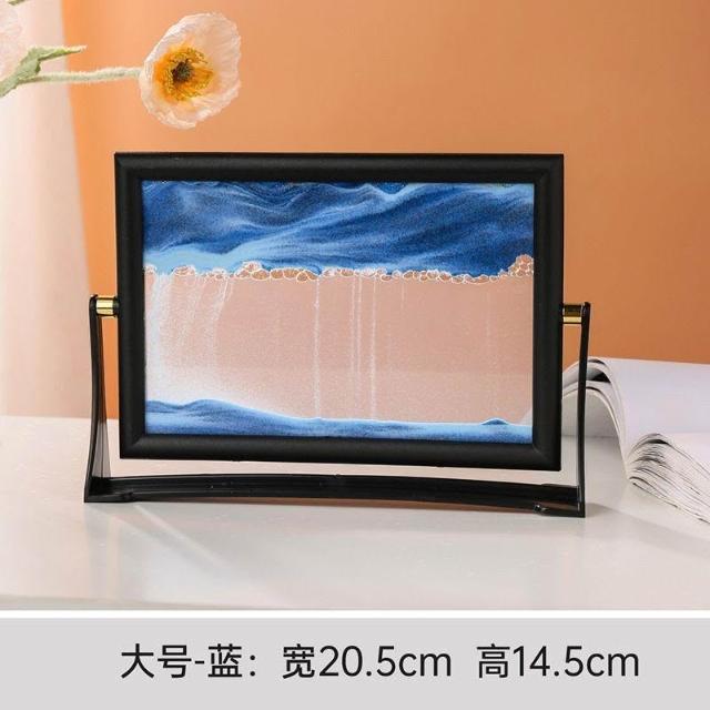 方形3D旋轉流沙畫擺件桌上液體沙漏解壓工藝品客廳家居裝飾禮物