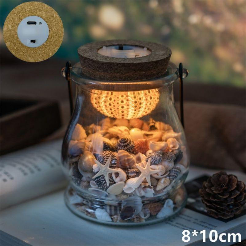 網紅爆款海膽燈貝殼收納瓶許願瓶海螺貝殼創意小夜燈生日禮物