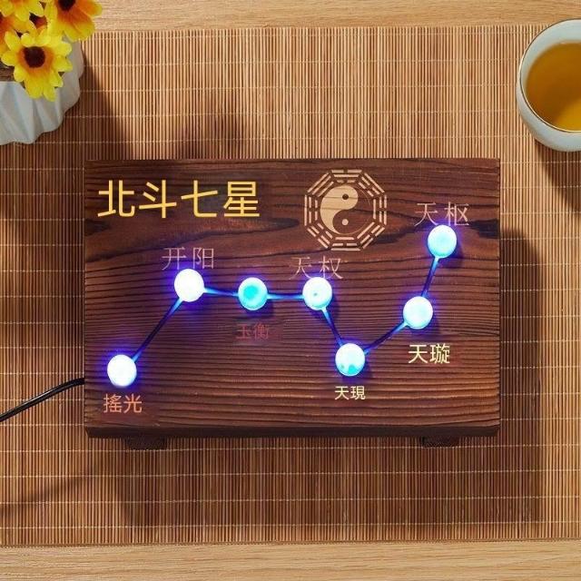 桌面擺件松木雕刻北斗七星燈後天八卦方位圖客廳辦公室實木工藝品