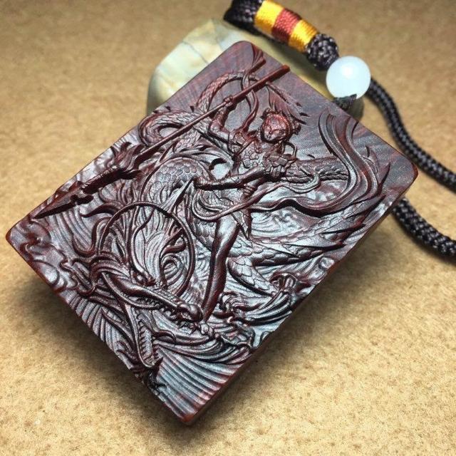 哪吒三太子 小葉紫檀 吊墜紅木工藝品項墜掛件脖掛車掛禮品雕刻