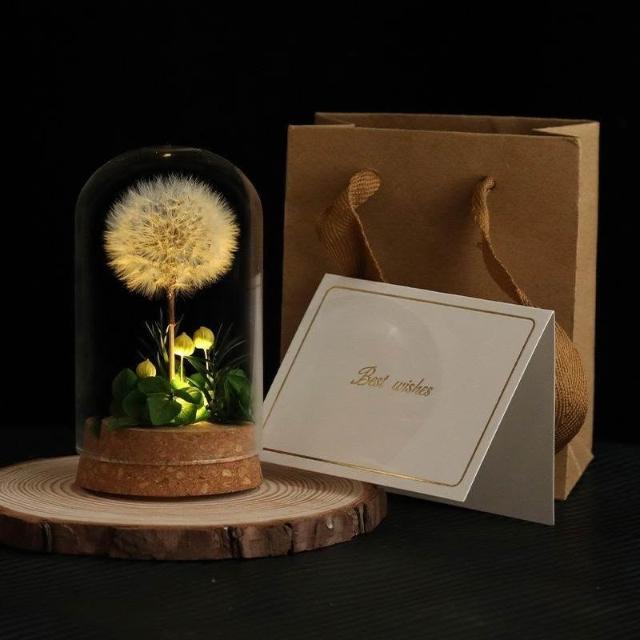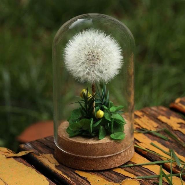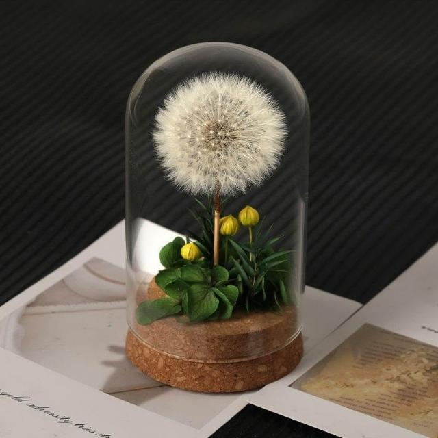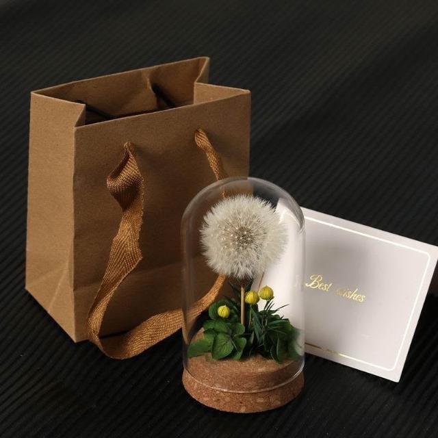 成品手工蒲公英玻璃罩永生花永久送母親老師女友乾花桌面生日禮物