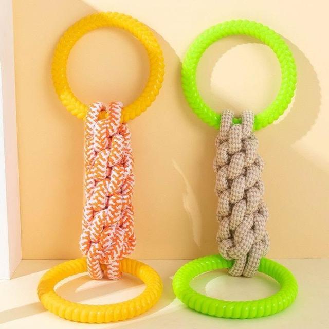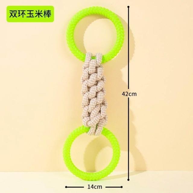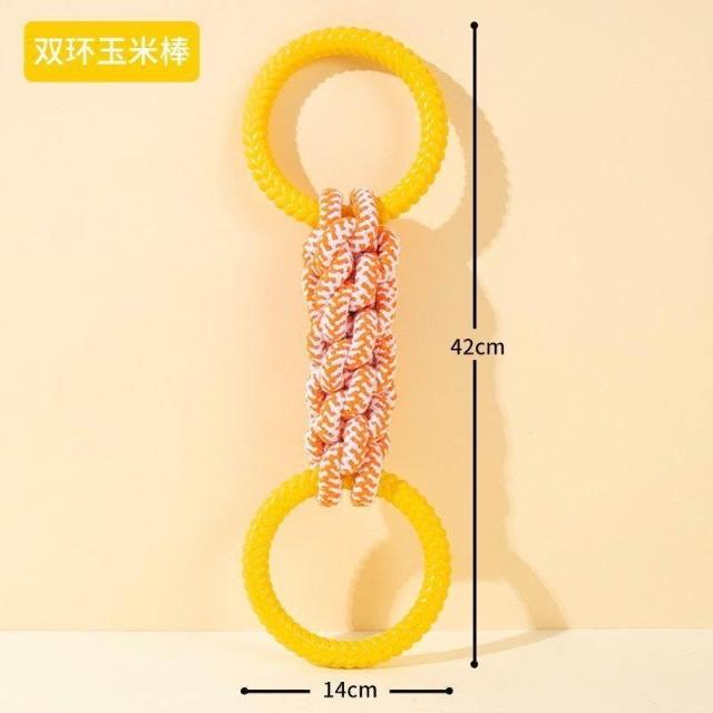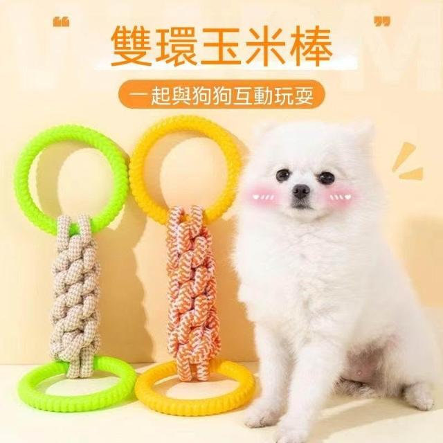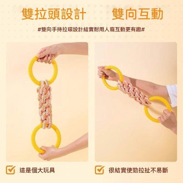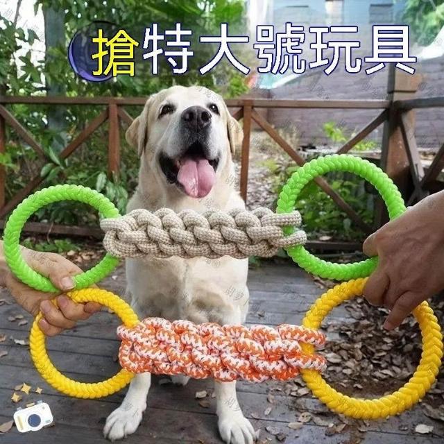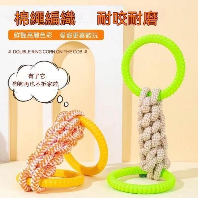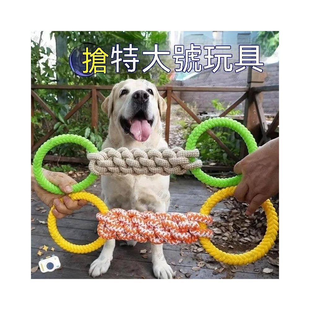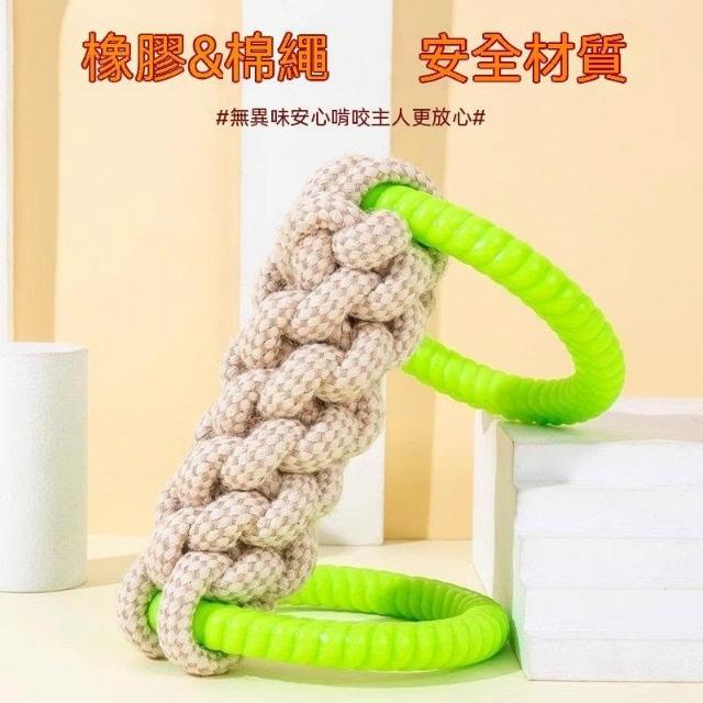 寵物棉繩小狗磨牙繩結超耐橡膠圈編織大型犬互動陪伴狗狗拔河玩具