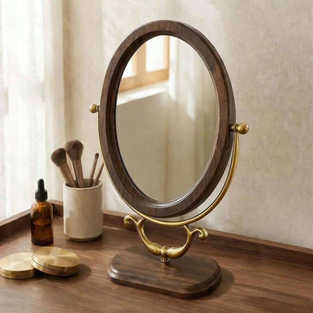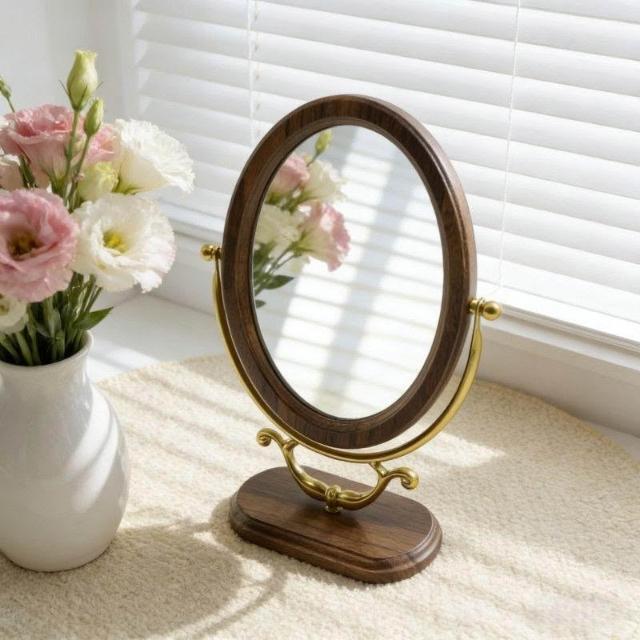 復古風臺式化妝鏡高級高檔鏡子化妝鏡臺式桌面宮廷風中古風化妝鏡