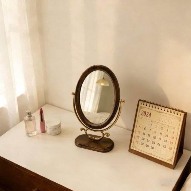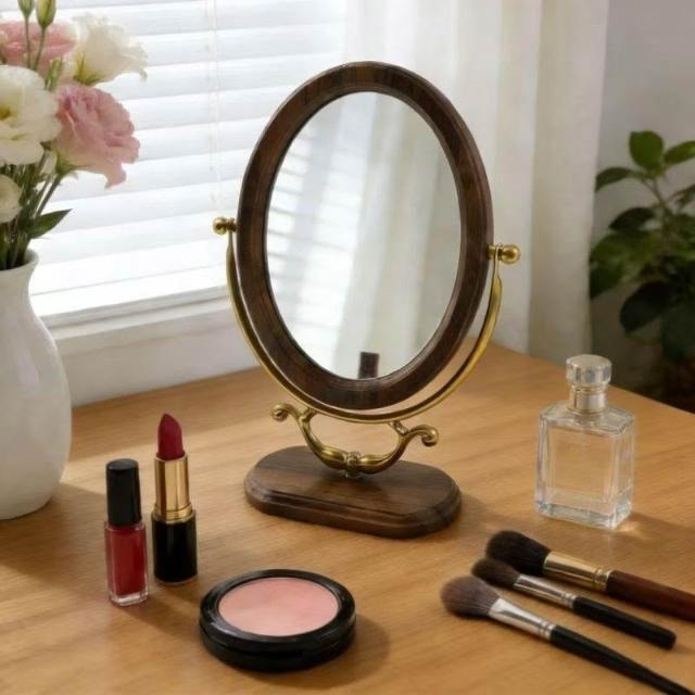 復古風臺式化妝鏡高級高檔鏡子化妝鏡臺式桌面宮廷風中古風化妝鏡
