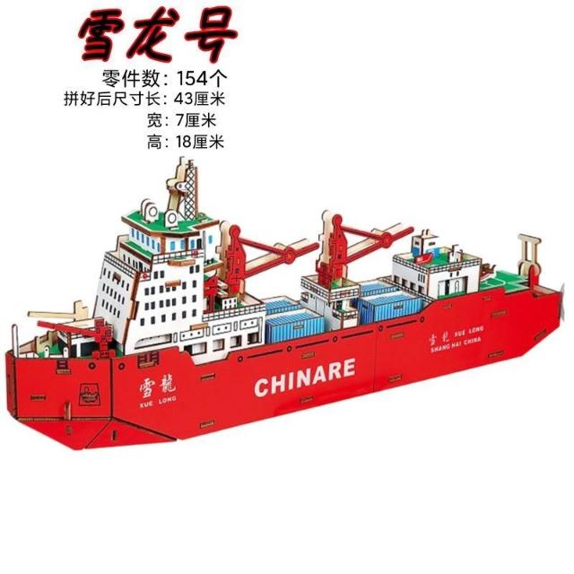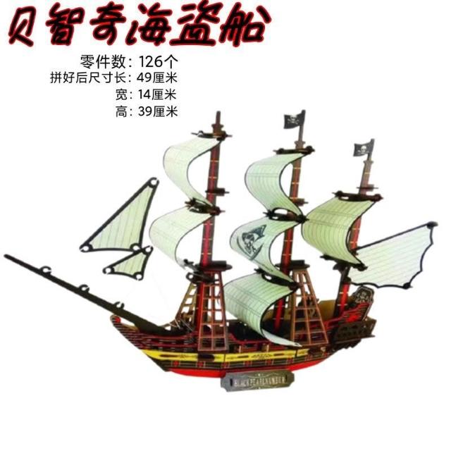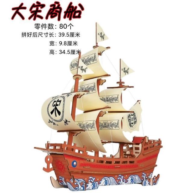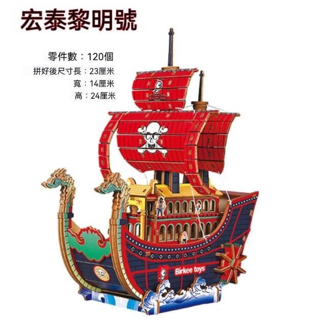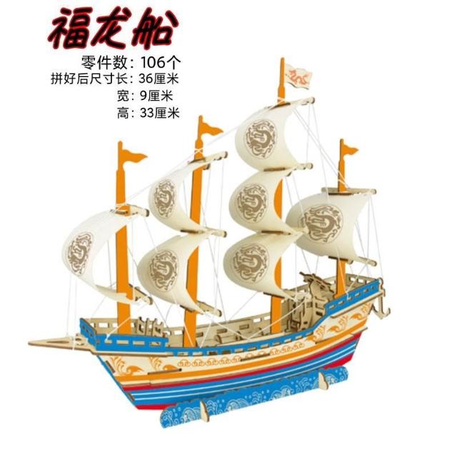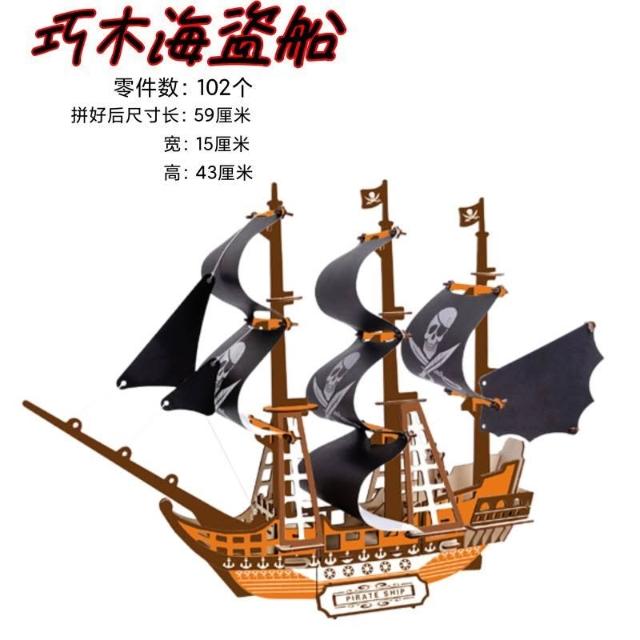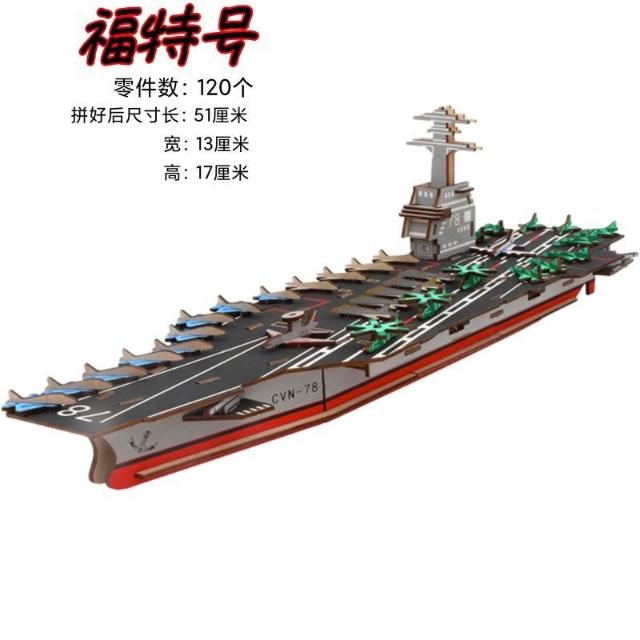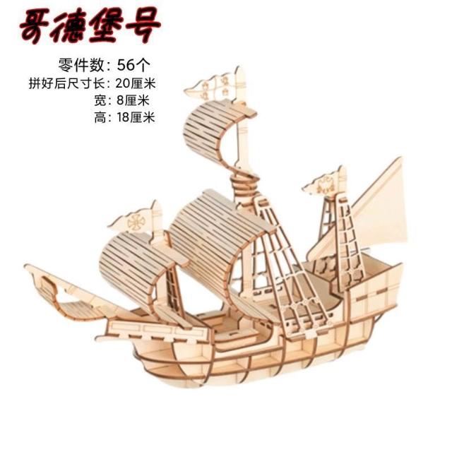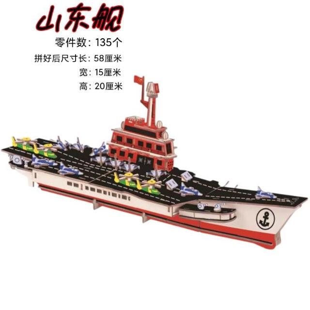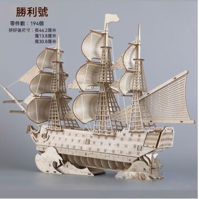 木製DIY航空母艦立體拼圖玩具含多艘仿真帆船益智拼裝體驗模型船