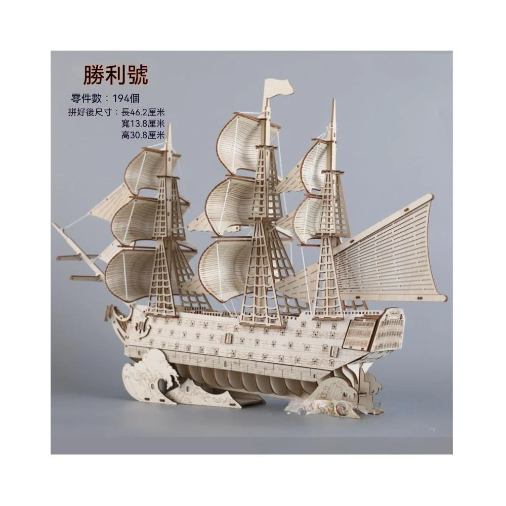 木製DIY航空母艦立體拼圖玩具含多艘仿真帆船益智拼裝體驗模型船