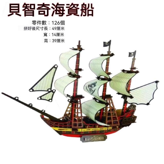 木製DIY航空母艦立體拼圖玩具含多艘仿真帆船益智拼裝體驗模型船