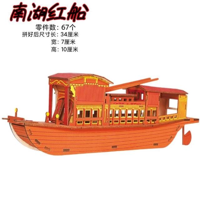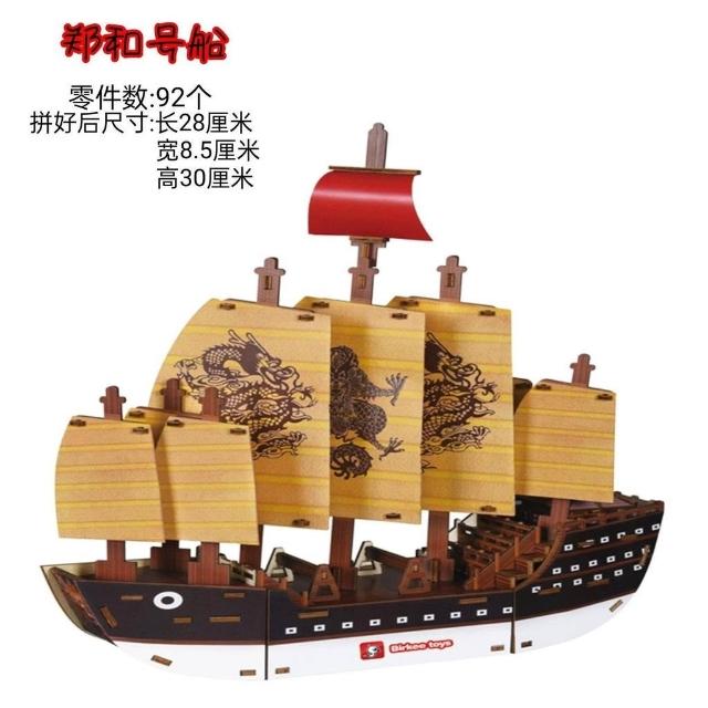 木製DIY航空母艦立體拼圖玩具含多艘仿真帆船益智拼裝體驗模型船
