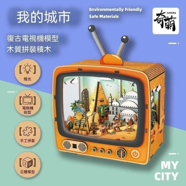 木質3d立體拼圖復古電視機模型燈光手工DIY積木拼裝輕奢感禮物