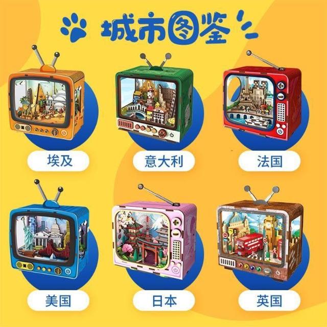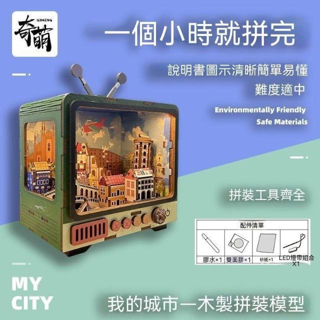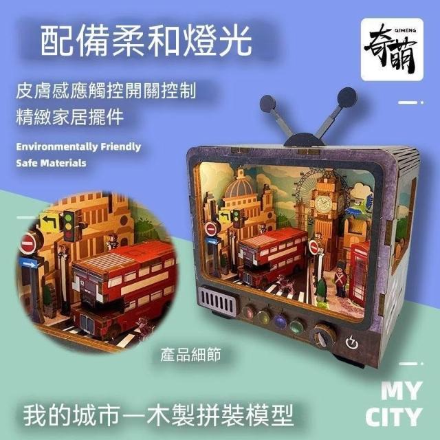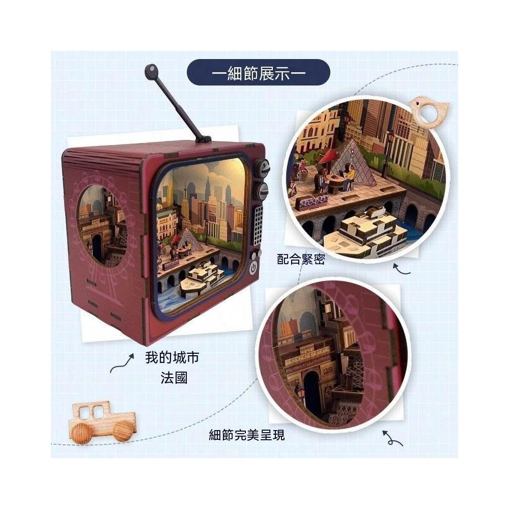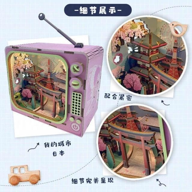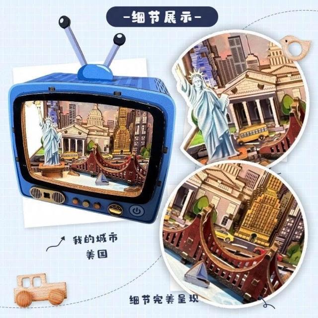 木質3d立體拼圖復古電視機模型燈光手工DIY積木拼裝輕奢感禮物