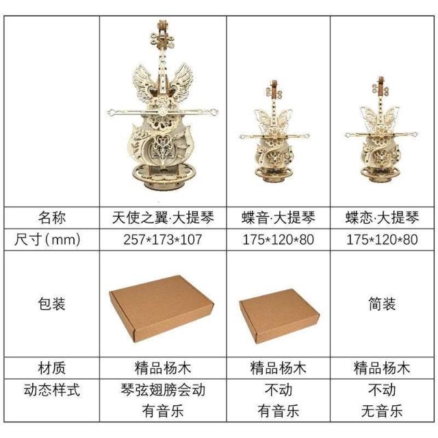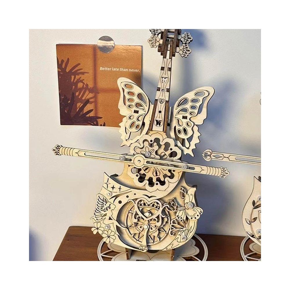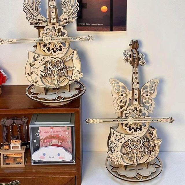 手工音樂盒大提琴木質拼裝模型3d立體拼圖diy成人益智玩具好禮物