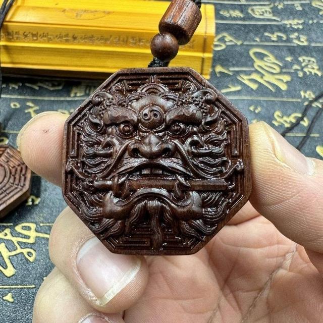 道家用品龍虎山直髮雷擊棗木吊墜牌太極八卦獅咬劍吊墜掛件吞口牌