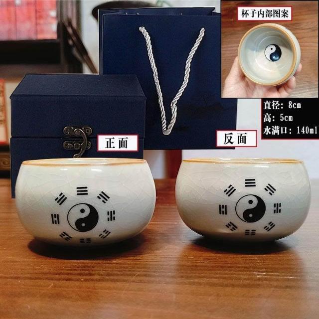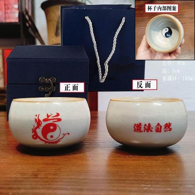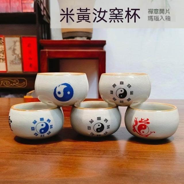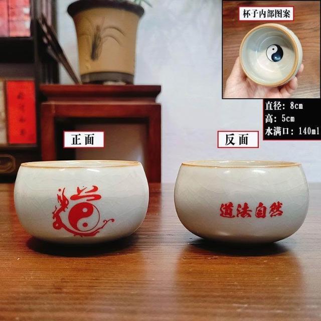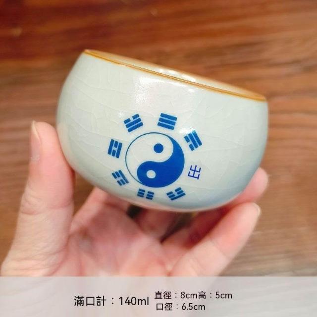 汝窯太極八卦圖茶杯可養開片主人單杯道家供奉淨水杯功夫陶瓷茶杯