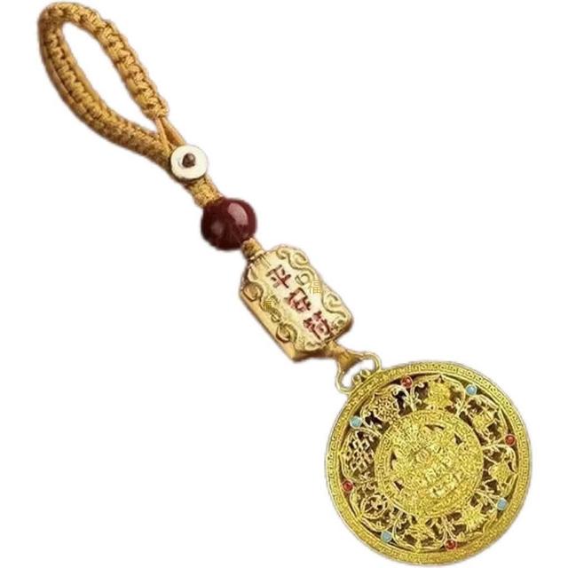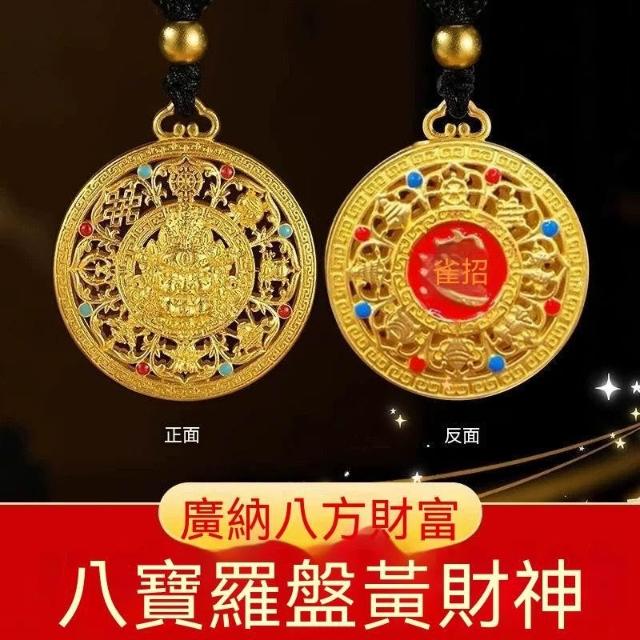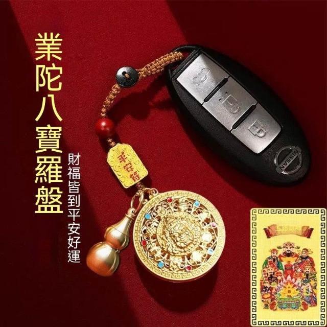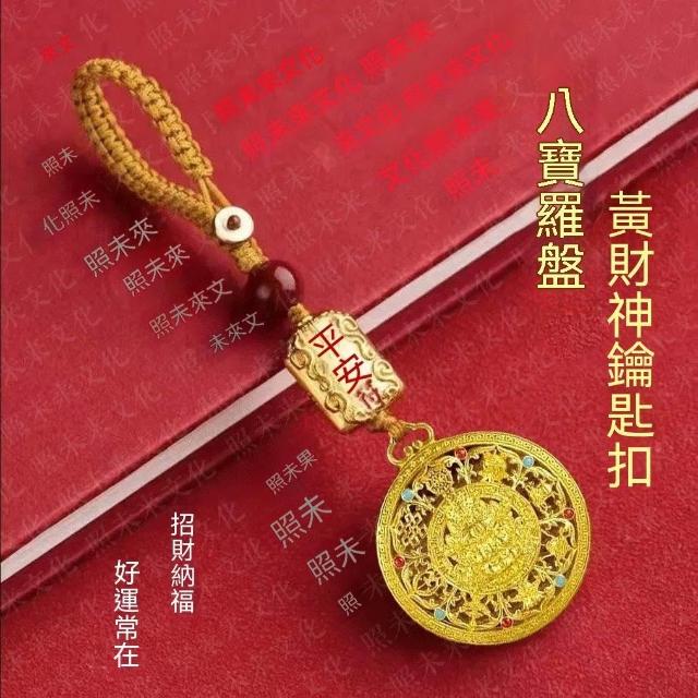 師傅推薦純銅硃砂葫蘆八寶羅盤黃財神鑰匙扣平安招財中式吊墜