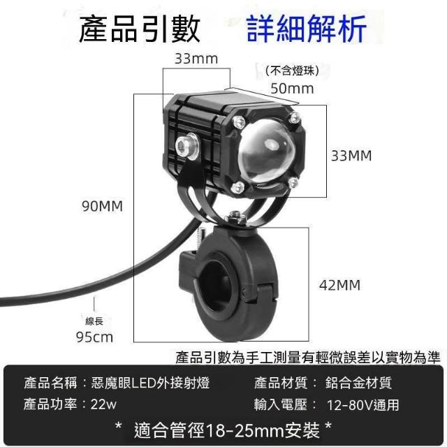 電動車燈超亮強光摩托車LED大燈泡外置透鏡射燈12V60V爆閃改裝燈