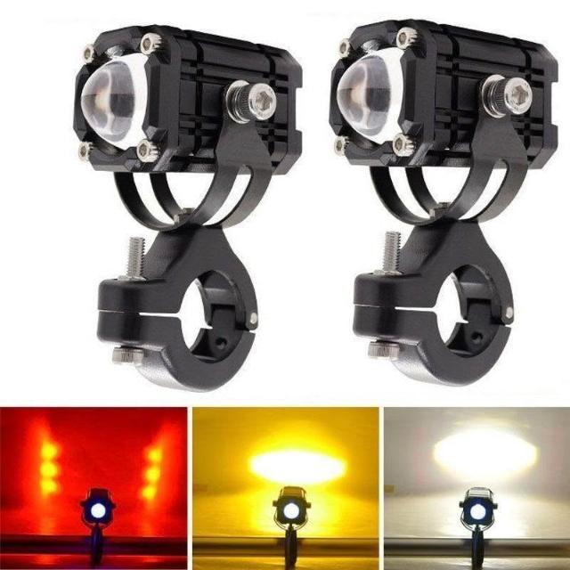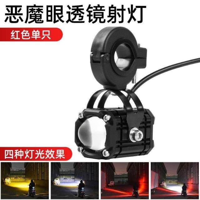 電動車燈超亮強光摩托車LED大燈泡外置透鏡射燈12V60V爆閃改裝燈