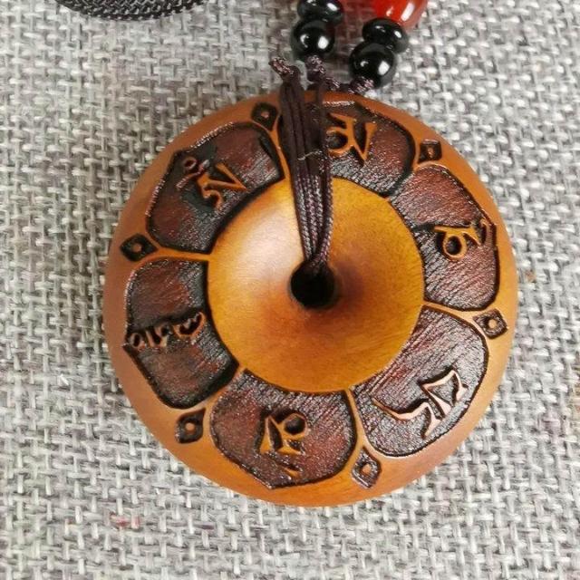 道家法器用品雷擊棗木 六字真言 吊墜雷擊木 平安扣