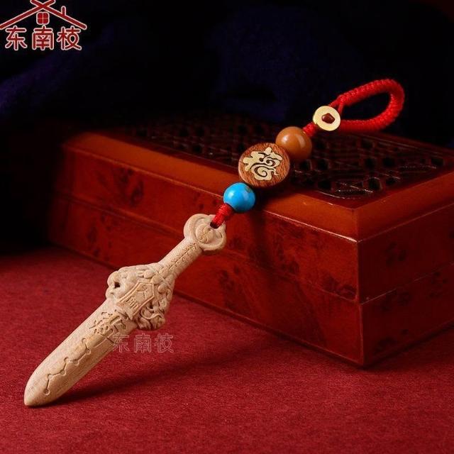 金木水火土桃木劍木雕天罡劍七星天師劍紫薇諱平安隨身項鍊鑰匙扣