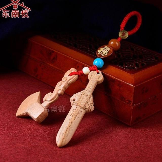 金木水火土桃木劍木雕天罡劍七星天師劍紫薇諱平安隨身項鍊鑰匙扣