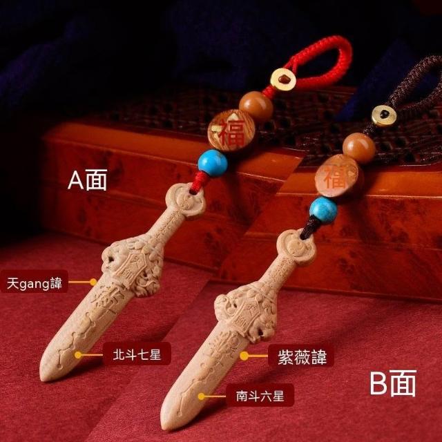 金木水火土桃木劍木雕天罡劍七星天師劍紫薇諱平安隨身項鍊鑰匙扣