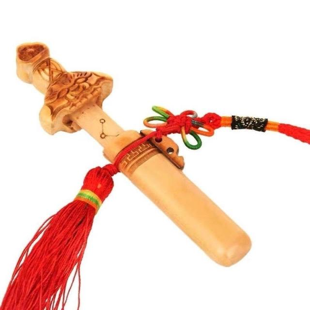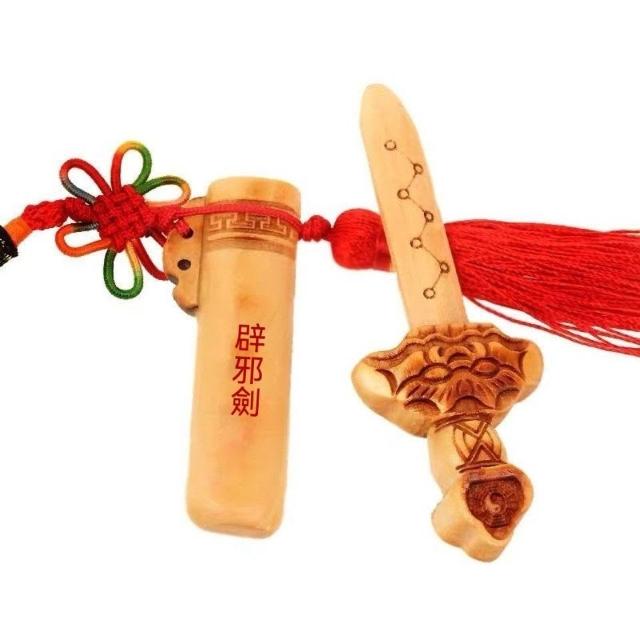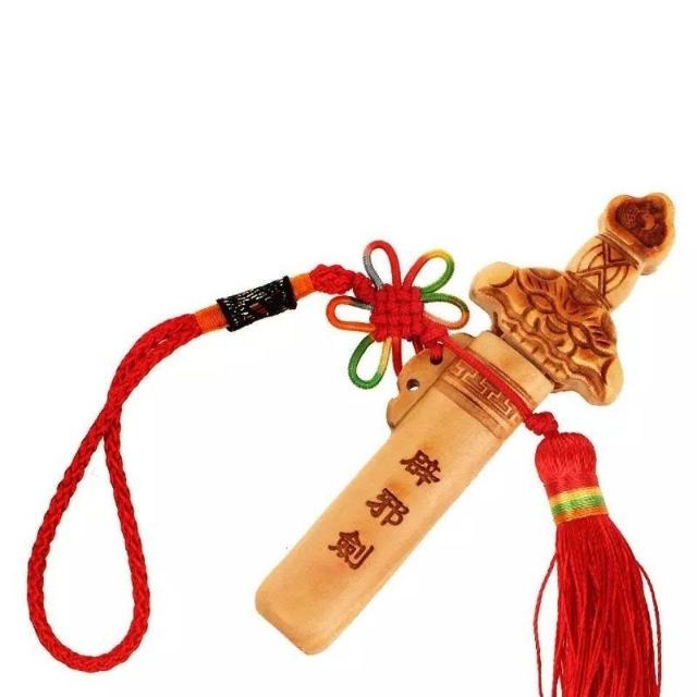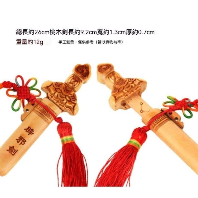風水擺件天然迷你桃木劍掛件9.2cm精雕原木桃木風水劍招財事業