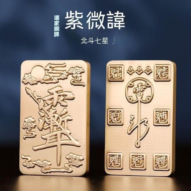 道家法器用品紫薇諱牌北斗七星擺件五雷雨漸耳純黃銅牌手把件批發