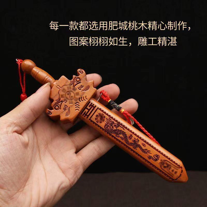 桃木劍正宗桃木寶劍掛件真品男女隨身客廳臥室小裝飾純手工硃砂劍