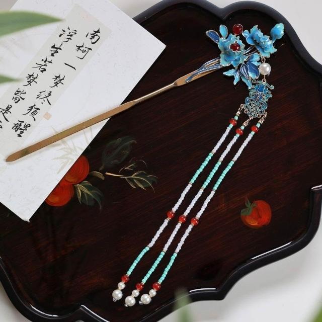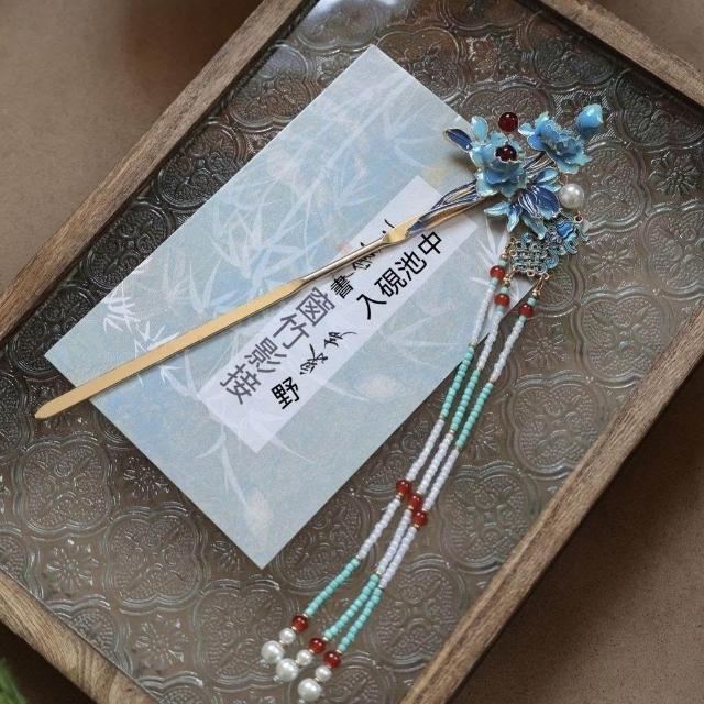 南枝原創手工新中式髮簪國風古典長流蘇步搖旗袍茶服古風發飾