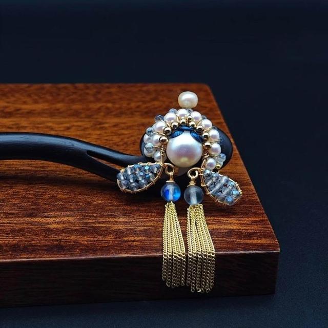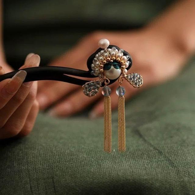 原創刀馬旦黑檀木髮簪古風傳統精緻盤髮簪子小衆高級感流蘇髮飾