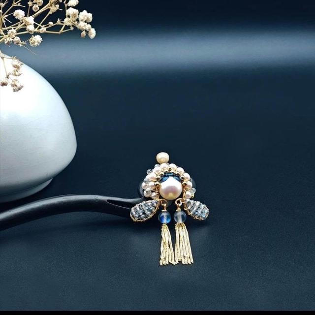 原創刀馬旦黑檀木髮簪古風傳統精緻盤髮簪子小衆高級感流蘇髮飾