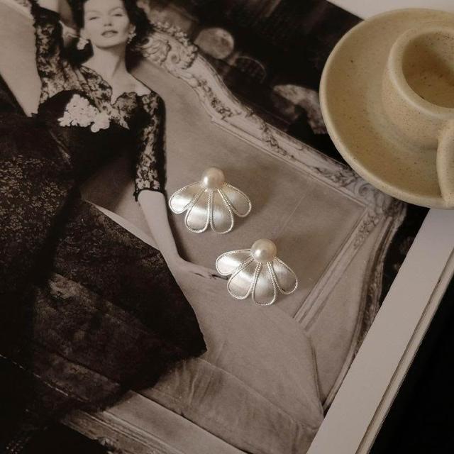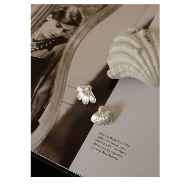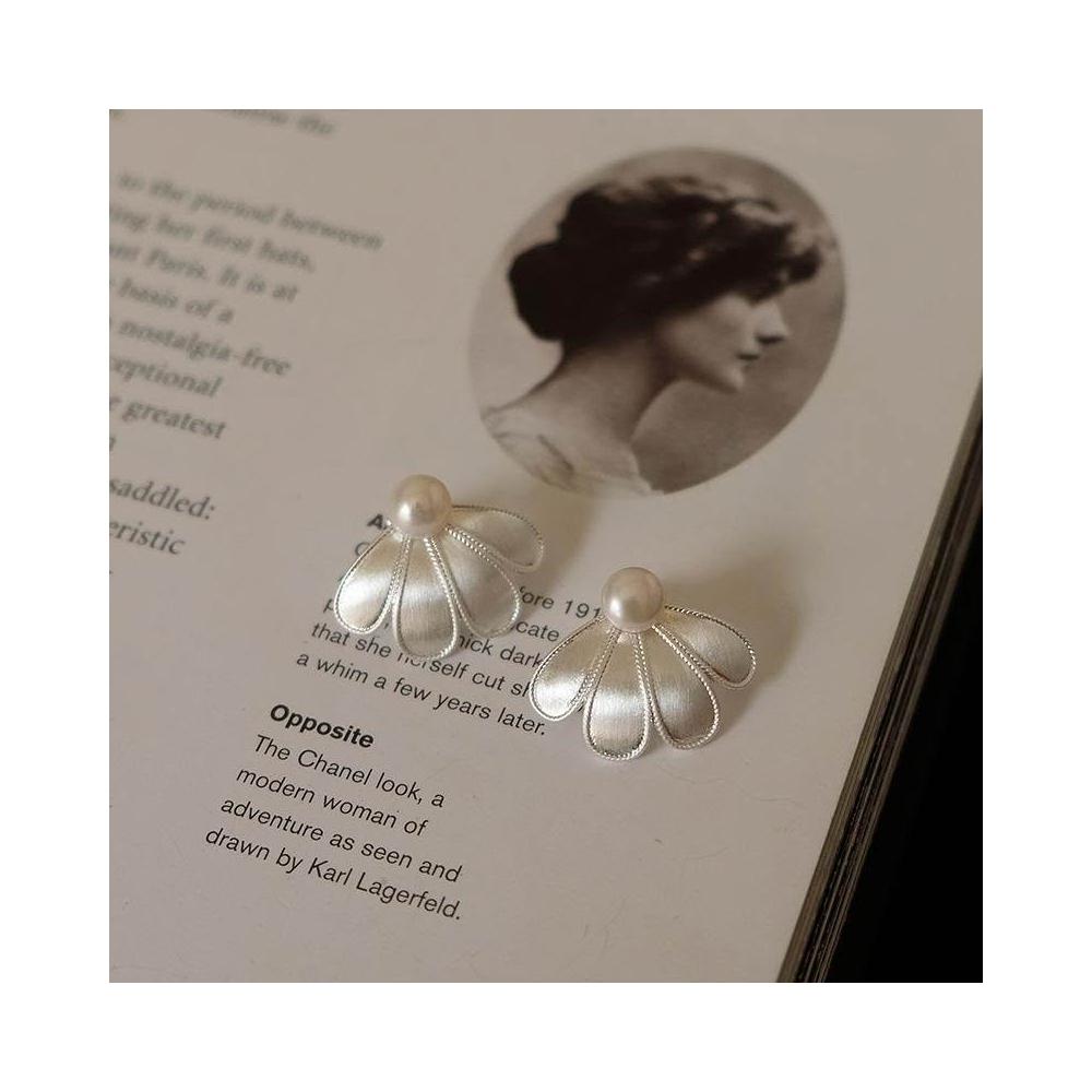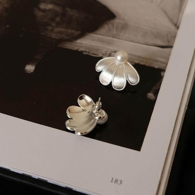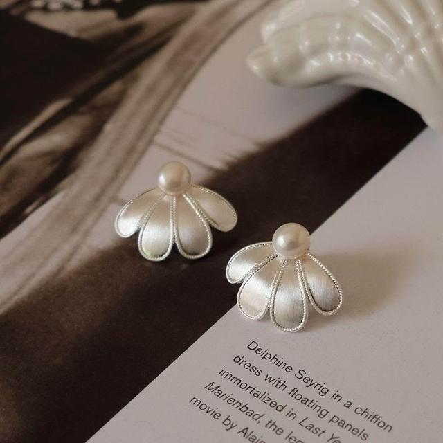新中式國風拉絲花瓣珍珠耳環S925純銀針耳釘獨特耳飾2026新款爆款