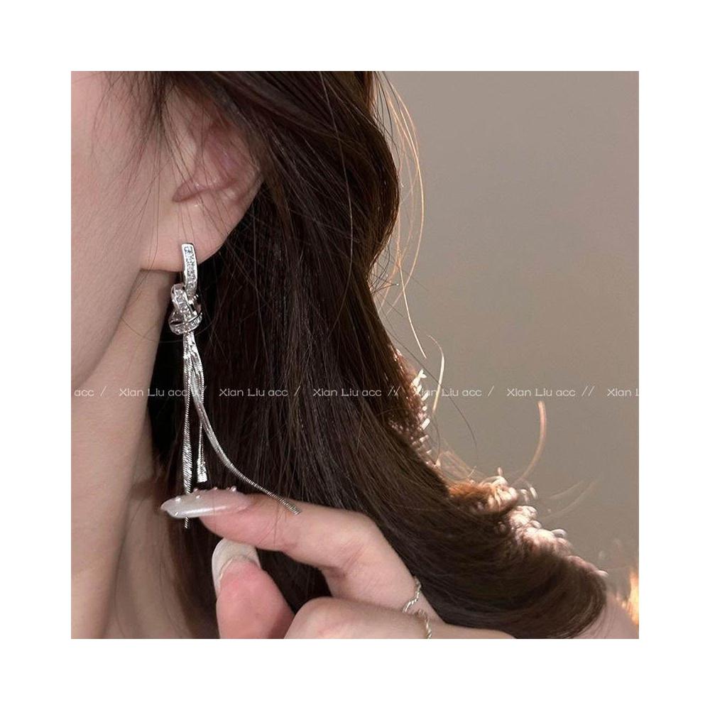 耳夾無耳洞純銀耳釘長款繩結流蘇耳環獨特氣質輕奢高級感小衆耳飾