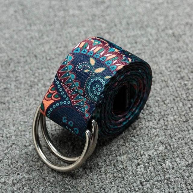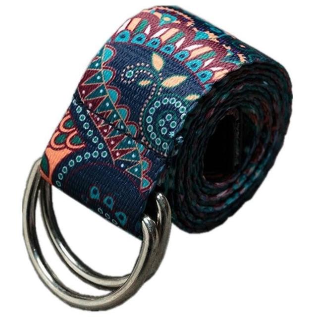 民族風腰帶花卉男女生帆布雙環扣工裝褲帶年輕人潮牌休閒百搭皮帶