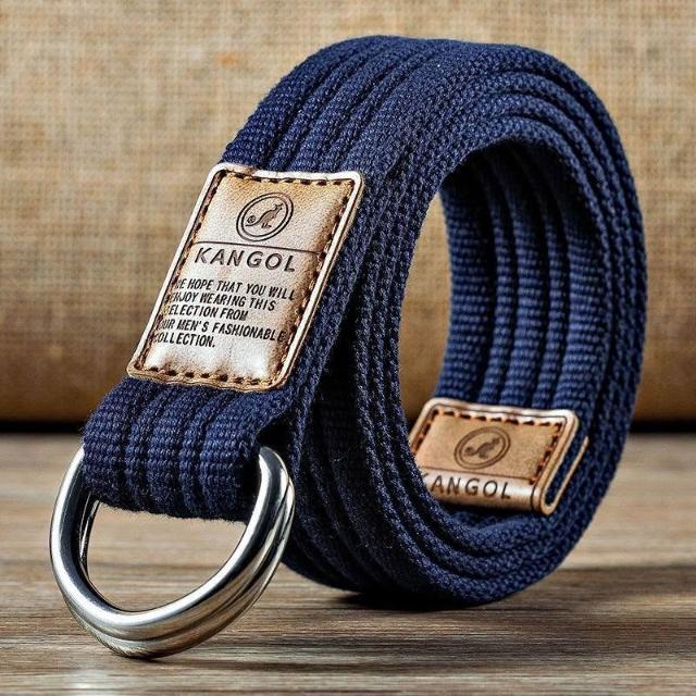 腰帶男帆布雙環扣皮帶年輕人牛仔工裝褲簡約女簡約學生潮流