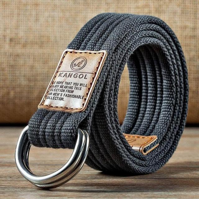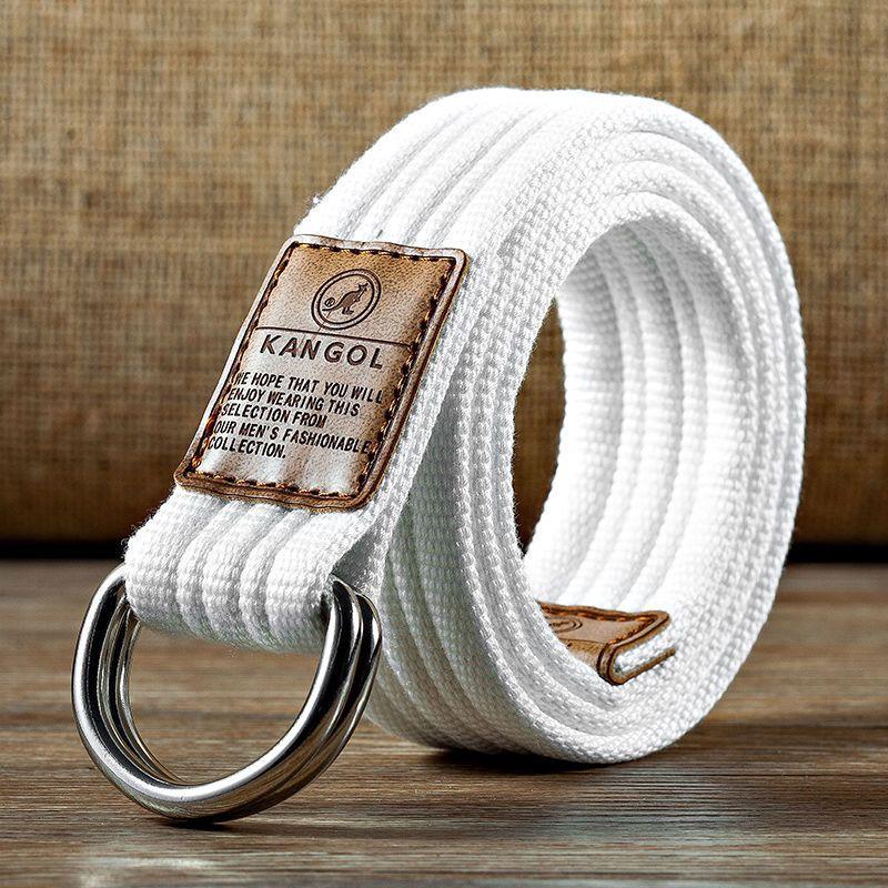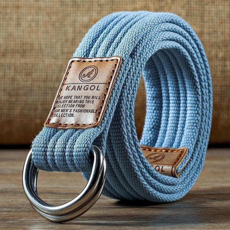 腰帶男帆布雙環扣皮帶年輕人牛仔工裝褲簡約女簡約學生潮流