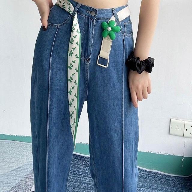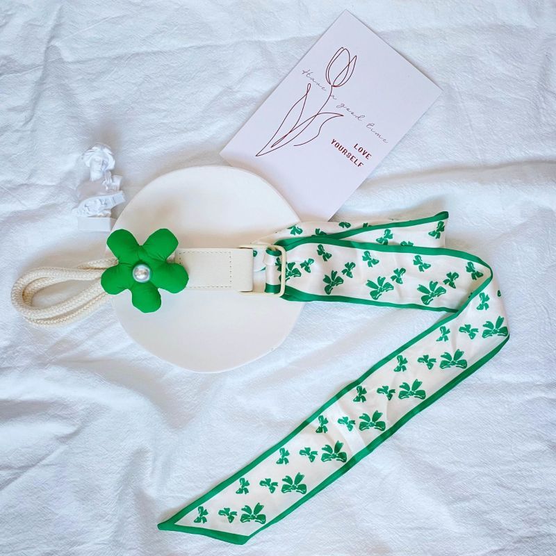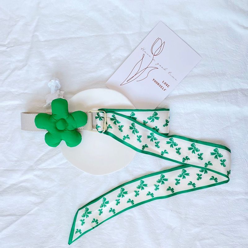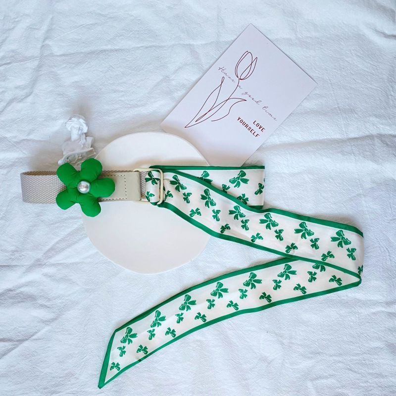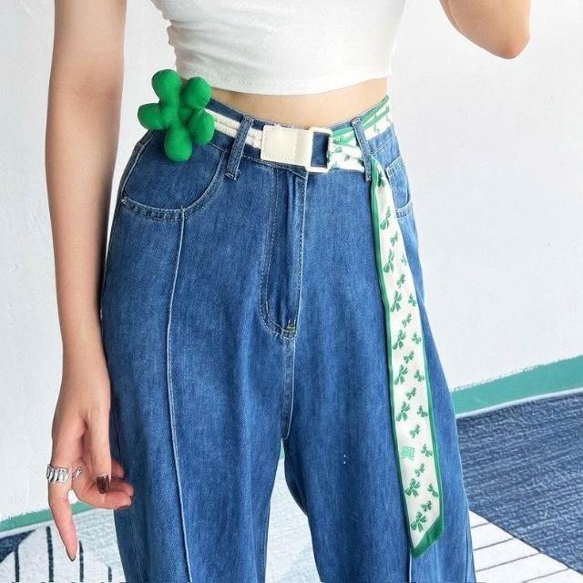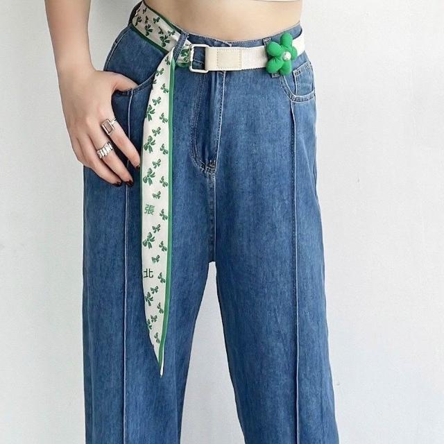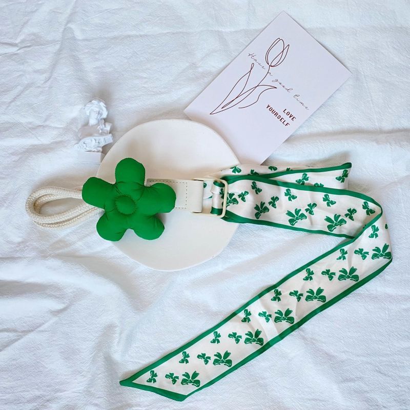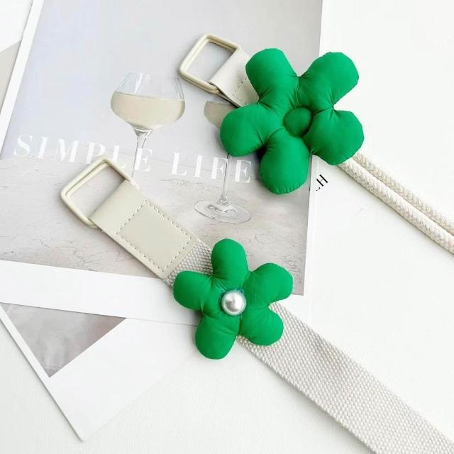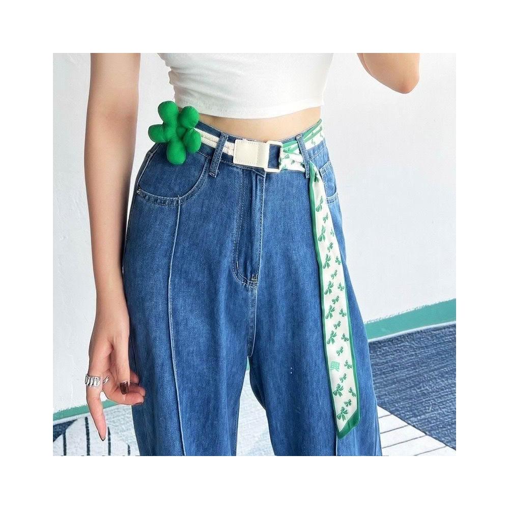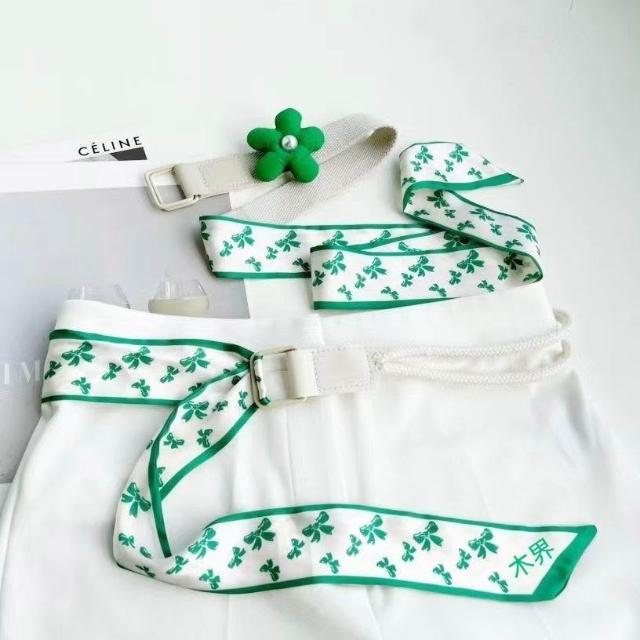 絲巾腰帶裝飾帆布雙環扣收腰皮帶女士腰飾百搭牛仔褲裙子綠色夏天