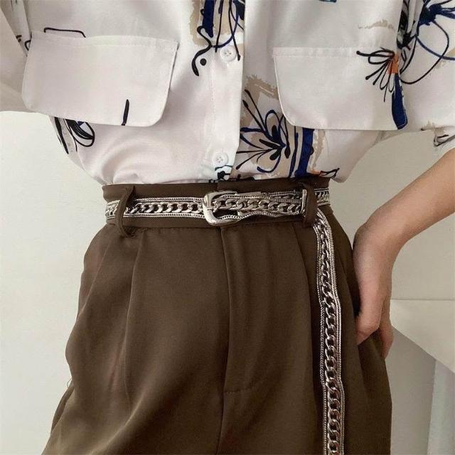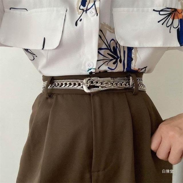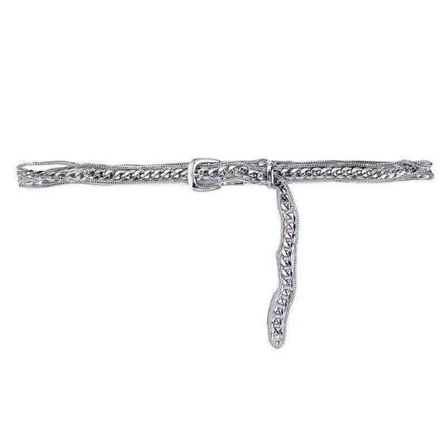高級感金屬鏈條銀色腰鏈女ins風腰帶免打孔百搭時尚辣妹牛仔褲帶