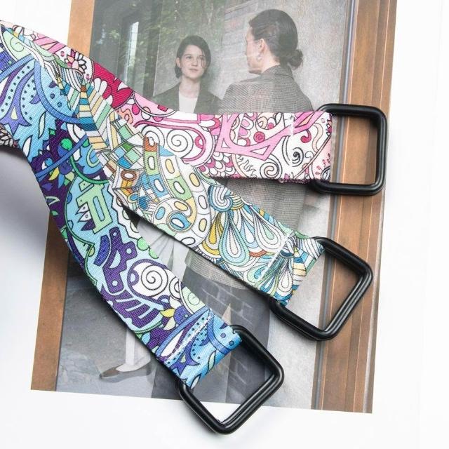 3.2cm方形雙環扣腰果花帆布腰帶 潮流個性印花字母裝飾年輕人皮帶