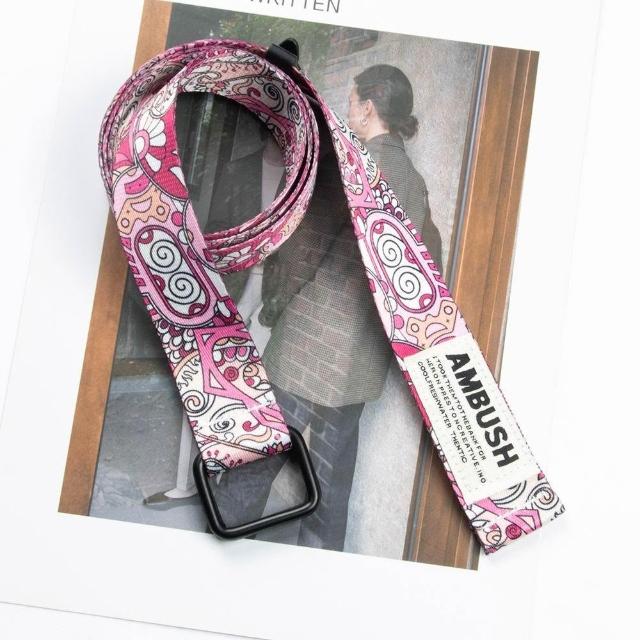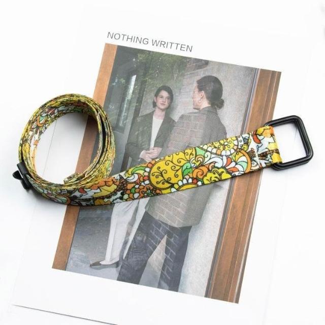3.2cm方形雙環扣腰果花帆布腰帶 潮流個性印花字母裝飾年輕人皮帶