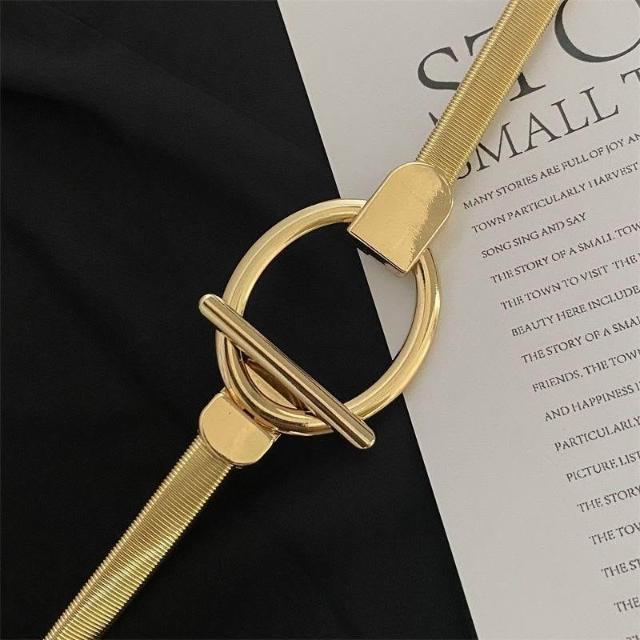 彈力腰鏈女配裙子收腰金屬鏈條金色腰帶裝飾腰封百搭毛衣細皮帶