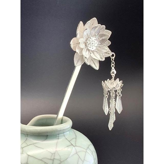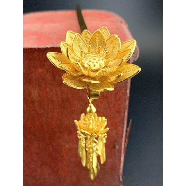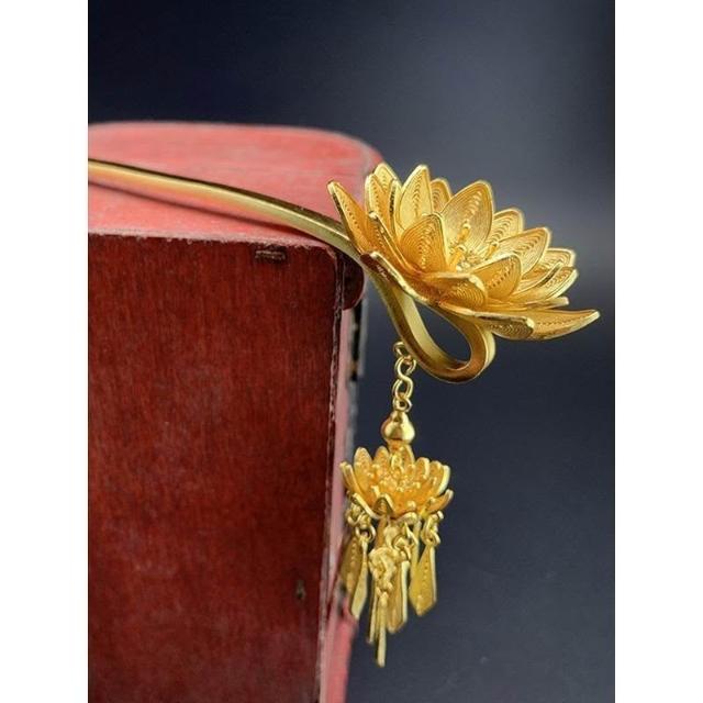 復古蓮花花絲金色髮簪新中式簪子明制頭飾頭釵流蘇步搖漢服髮飾