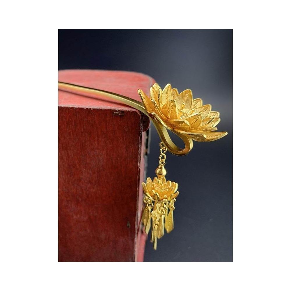 復古蓮花花絲金色髮簪新中式簪子明制頭飾頭釵流蘇步搖漢服髮飾