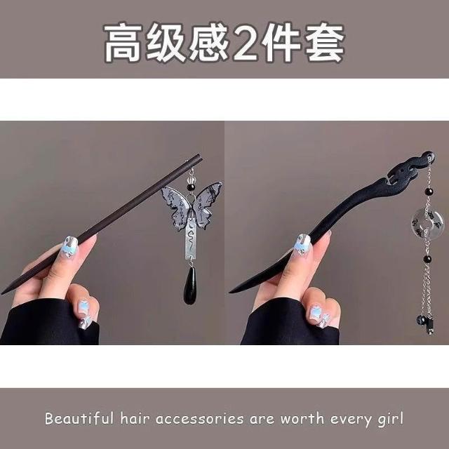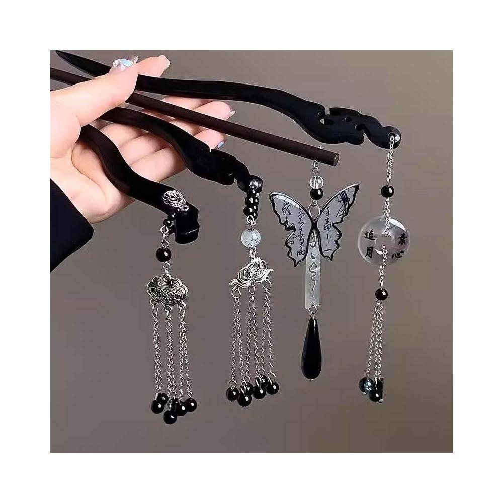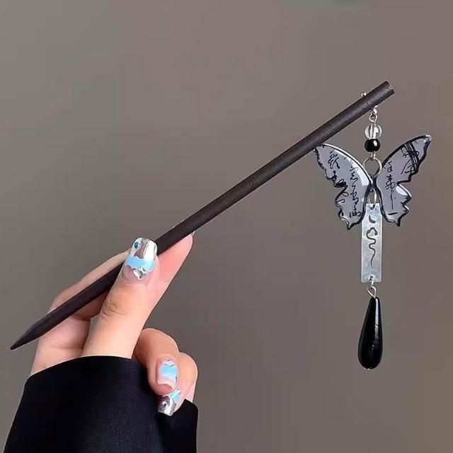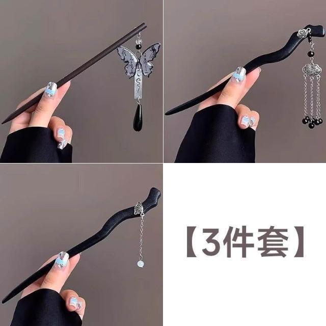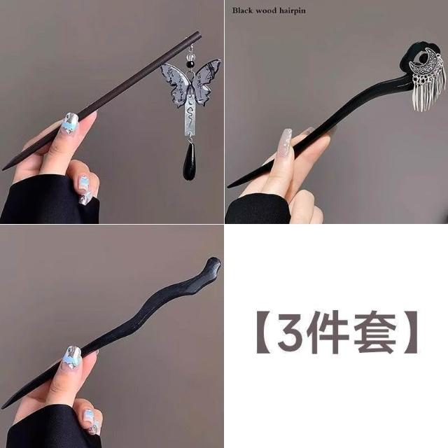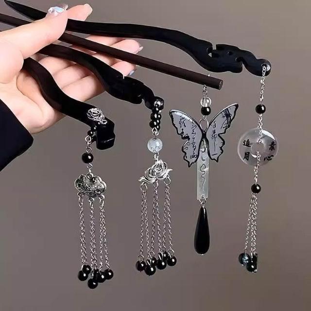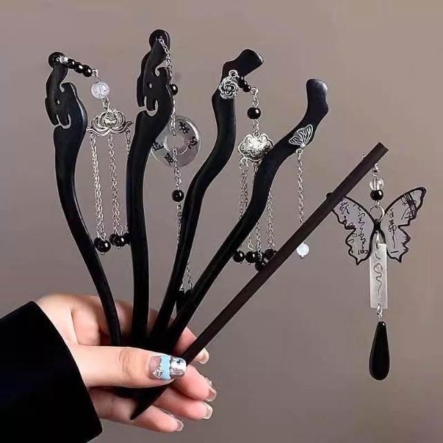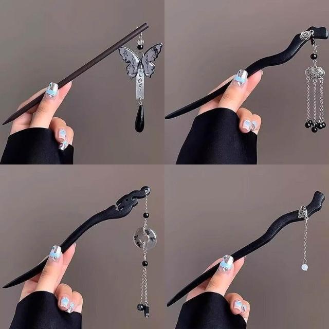 新流蘇古風黑檀木髮簪旗袍木簪髮釵子盤發頭飾配飾