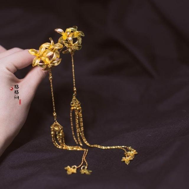 格格間原創漢服花朵流蘇掩鬢雕花明制珍珠古風富貴u釵髮簪子頭飾