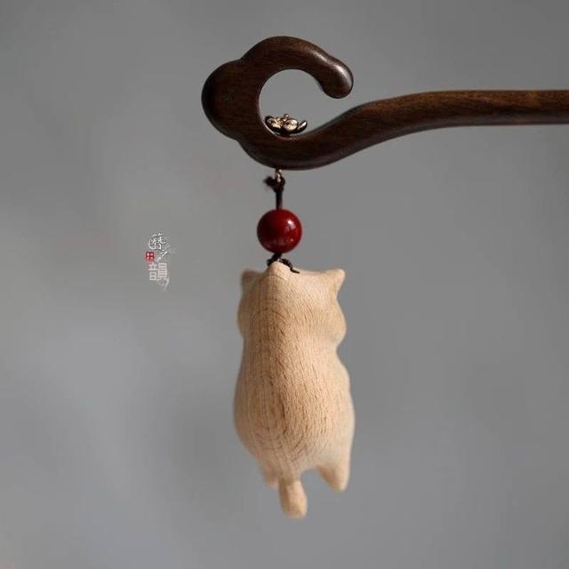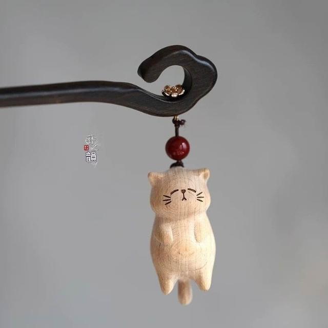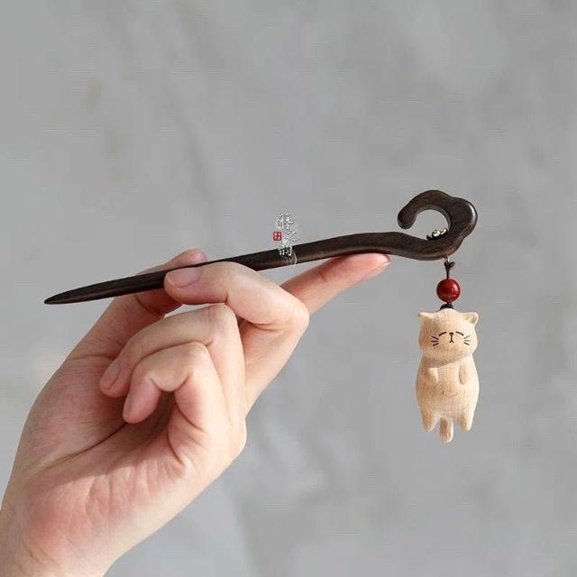 簪之韻【擺爛貓】手工木雕髮簪子大葉紫檀木實木髮飾有趣貓咪盤發