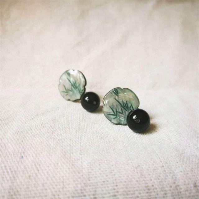 清冷感竹葉子耳環小衆新中式耳釘原創設計復古國風方圓臉顯瘦耳飾