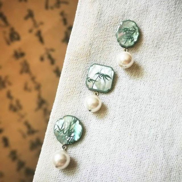 清冷感竹葉子耳環小衆新中式耳釘原創設計復古國風方圓臉顯瘦耳飾