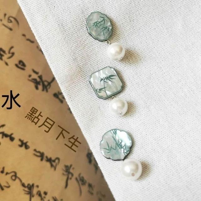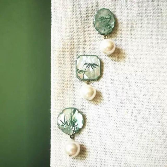 清冷感竹葉子耳環小衆新中式耳釘原創設計復古國風方圓臉顯瘦耳飾