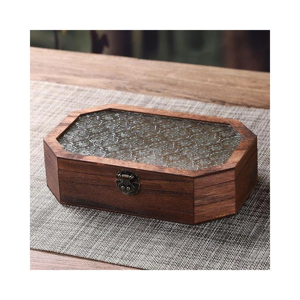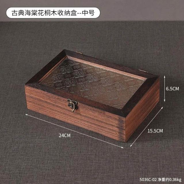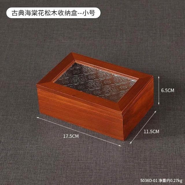 復古海棠花木質收納盒耳釘珠寶戒指收納儲物首飾盒木盒化妝臺擺設