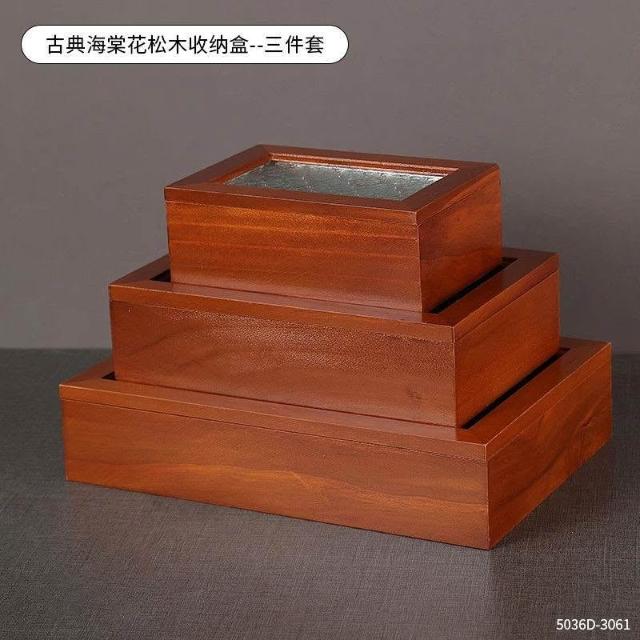 復古海棠花木質收納盒耳釘珠寶戒指收納儲物首飾盒木盒化妝臺擺設
